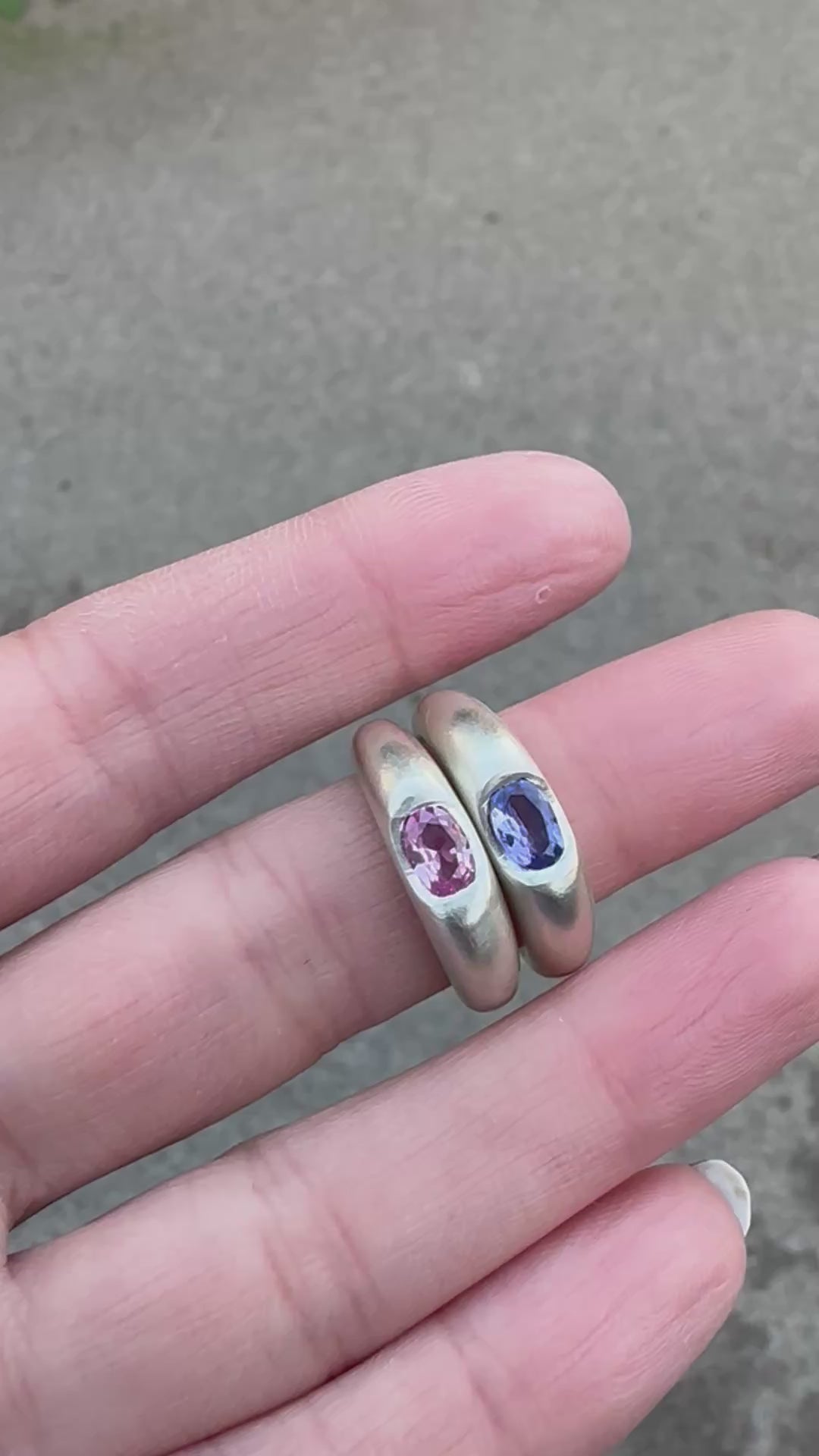 A domed design ring deep set with a stunning stone of choice finished in a satin matt silver finish.