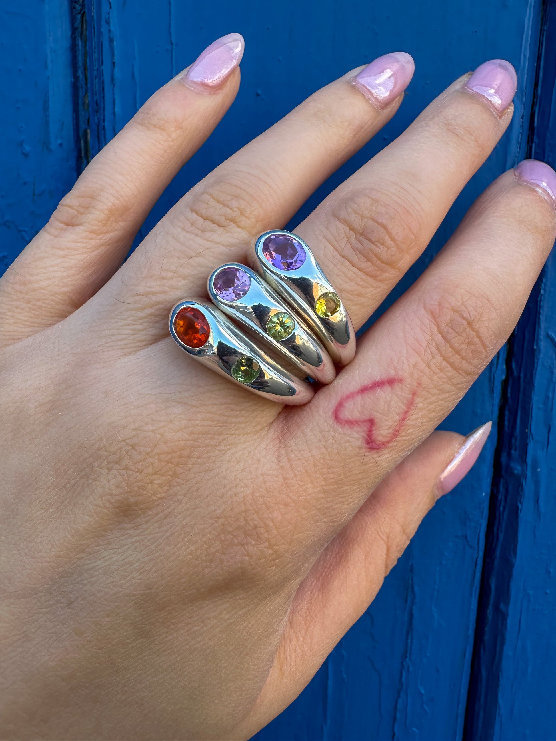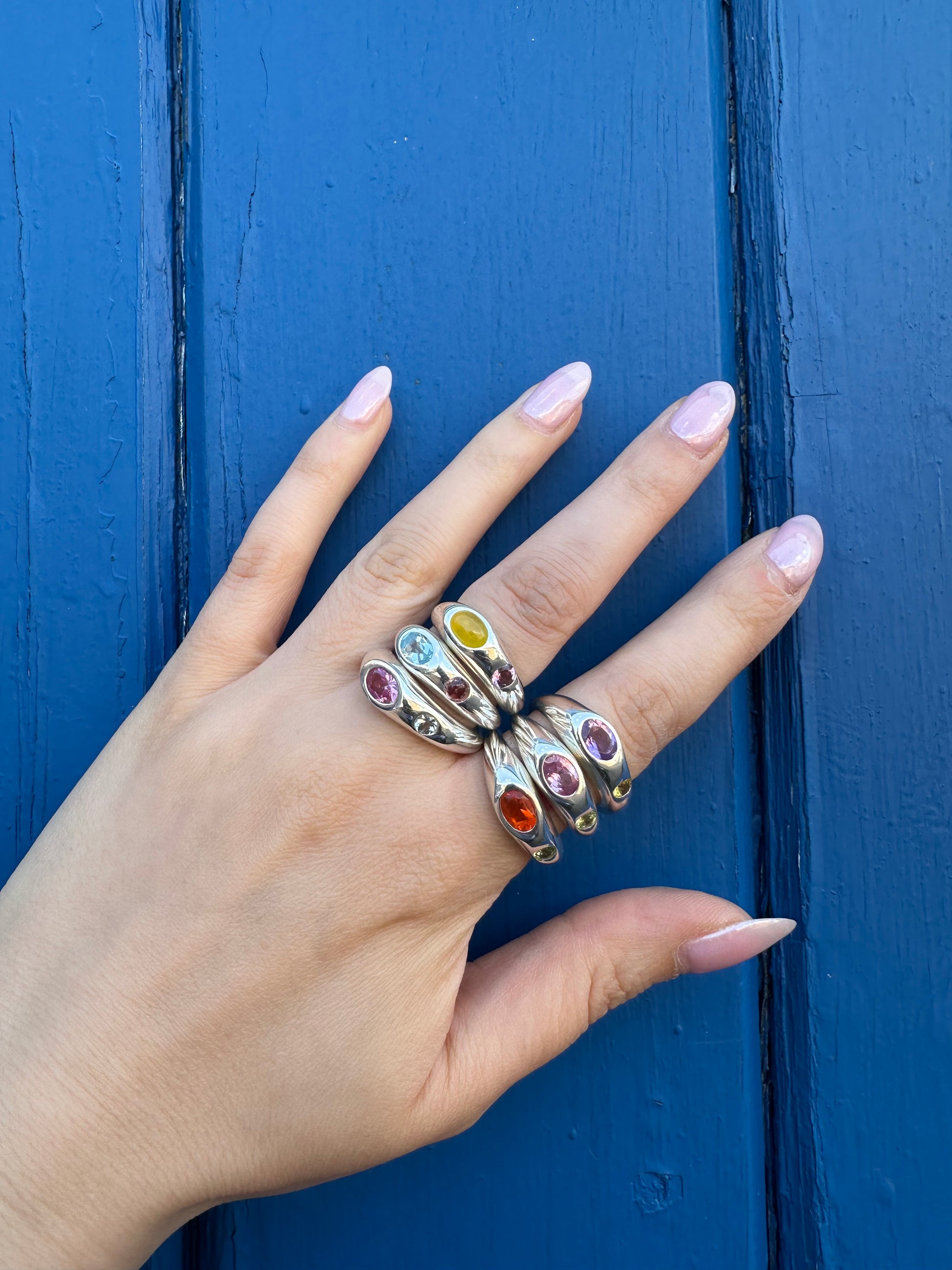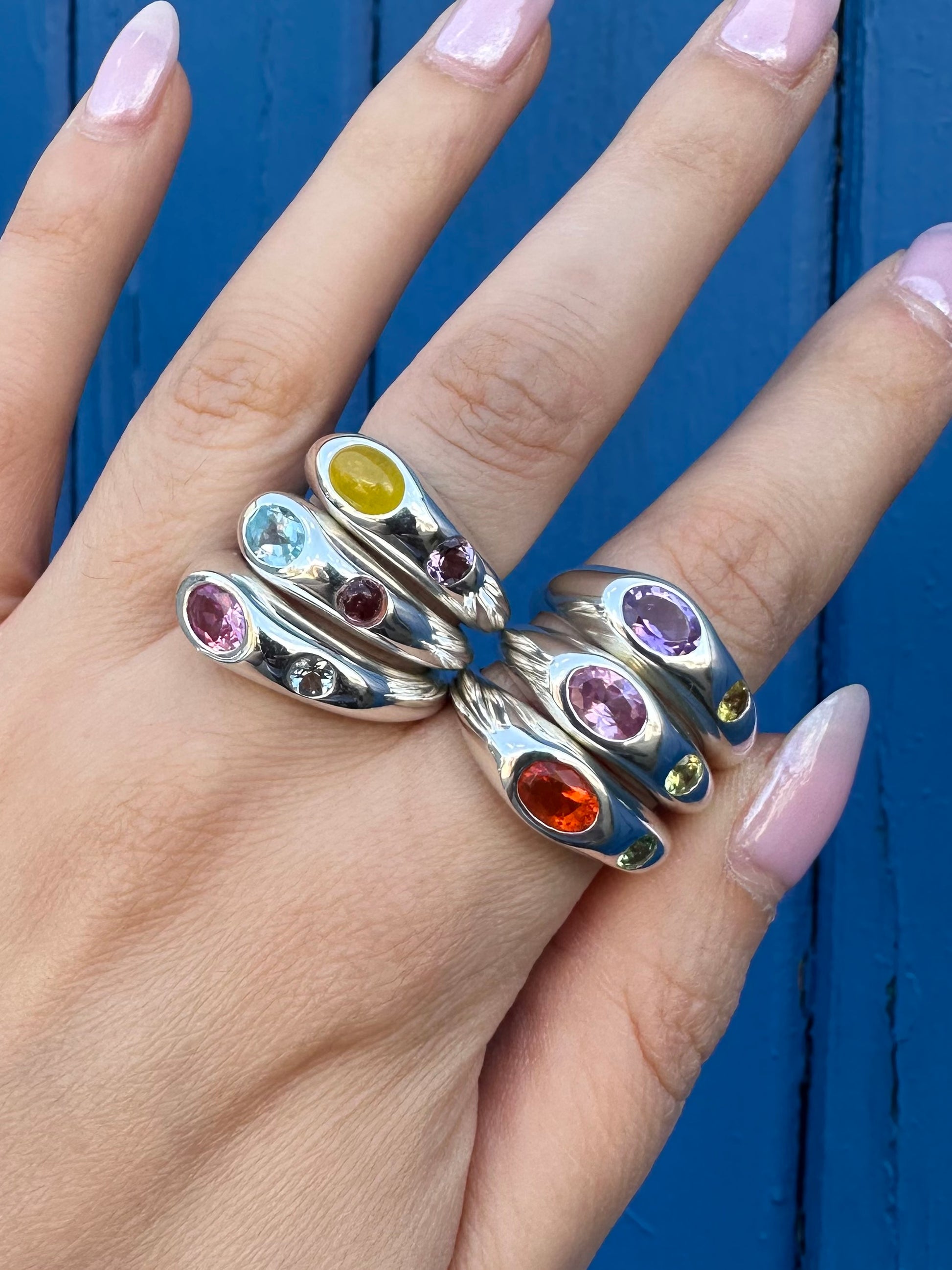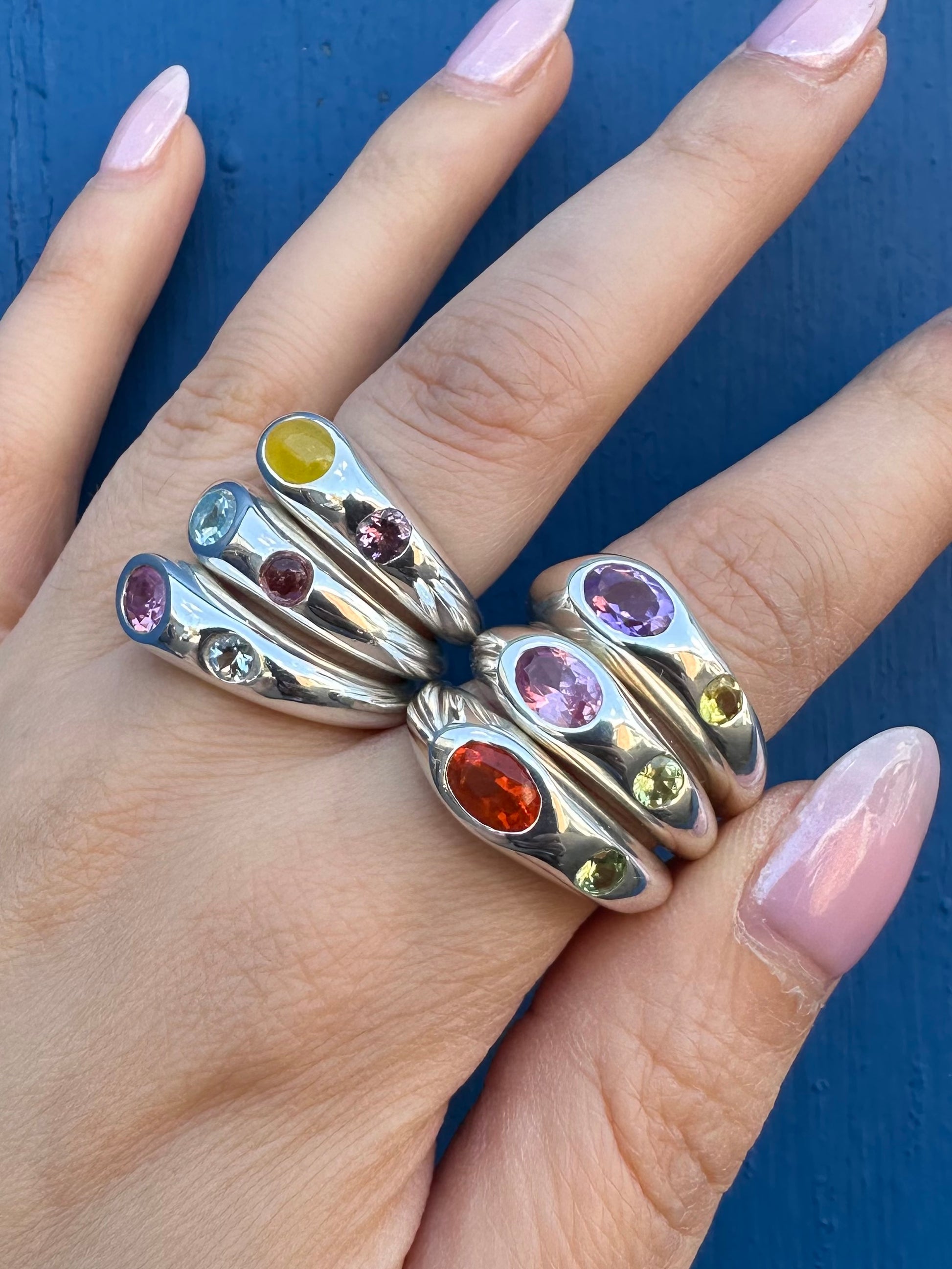 A sleek and minimalist ring, perfect for stacking or wearing on its own. This slimmer version of the original Sideway Signet can be customized with your choice of stone combinations.